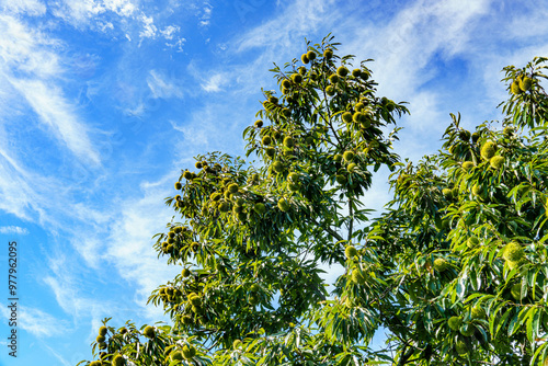 © Gottchin Nao, Obraz premium 青い空と収穫間近の栗の実