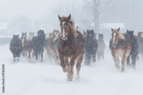 Naklejka premium 走る馬の集団
