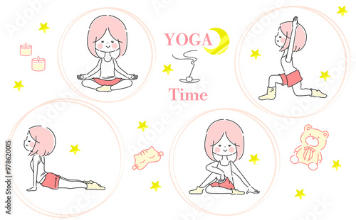 Fototapeta premium ヨガのポーズをする女性のイラストセット