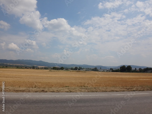 © keleny, Obraz premium Желтое скошенное поле колосьев осенью
