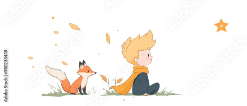 © daejang, Fototapeta premium 아름다운 마음을 가진 어린 왕자, 그리고 여우와 장미 일러스트