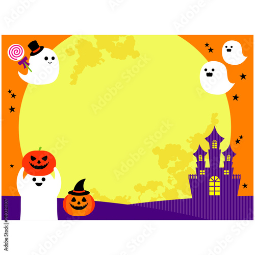 © nem, Naklejka premium かぼちゃとおばけとお城のかわいいハロウィンフレーム