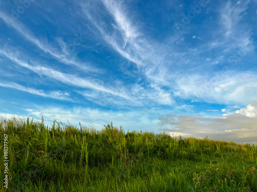 © kazuyuki, Obraz premium 青い空と雲と緑茂る丘