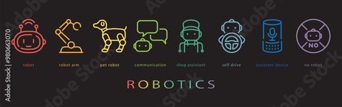 Obraz premium ロボティクス ネオンカラーのラインアイコン