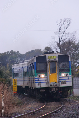 Obraz premium 通学ラッシュに備えて長編成を組む久留里線キハ37・38形気動車_2010/02/11撮影