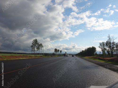 © keleny, Fototapeta premium Дорога с разметкой в солнечный летний день под голубым небом с облаками