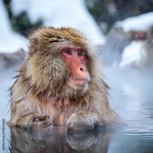 © 杏菜 筑紫, Obraz premium 温泉につかる猿