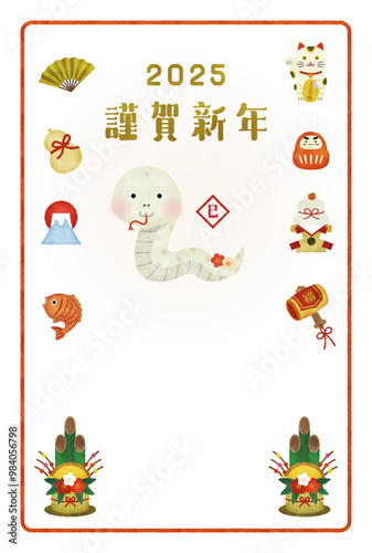 © pinoko, Fototapeta premium 巳年の水彩風イラスト年賀状