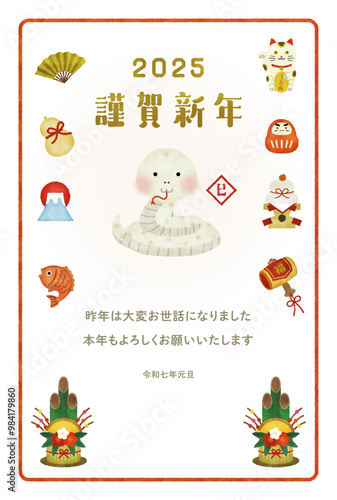 © pinoko, Fototapeta premium 巳年の水彩風イラスト年賀状