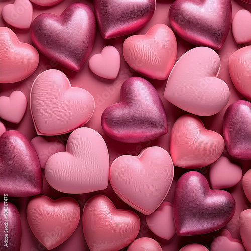 © あいろ, Fototapeta premium ピンクの背景に沢山のピンク色のハート