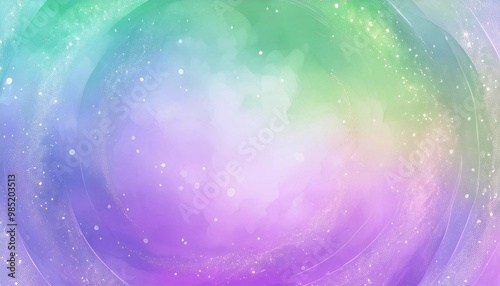 Fototapeta premium 紫と緑の幻想的な波紋のイラスト背景