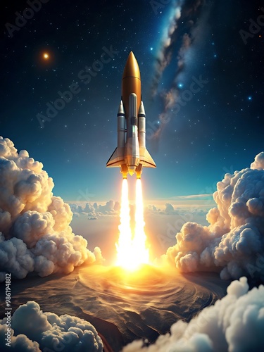 © theartcreator, Obraz premium 宇宙に打ち上げられるロケットは、暗号通貨市場の成長を象徴しています。
