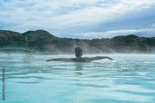 Fototapeta premium アイスランドのブルーラグーンで泳ぐ