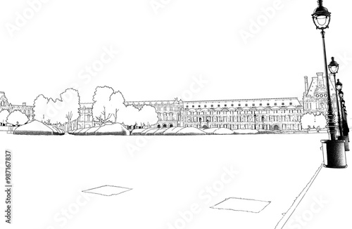 © haikeisouko, Obraz premium 漫画風ペン画イラスト 海外_街並