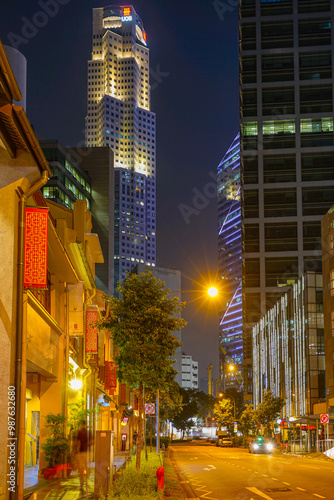 © kanzilyou, Obraz premium 夜のシティスケープ(シンガポール)