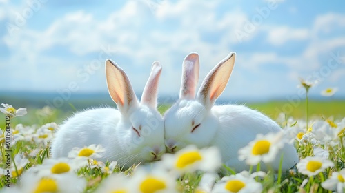 © StudioFF, Fototapeta premium 青い空の下でお昼寝する2匹のウサギ