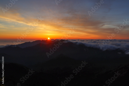 Fototapeta premium 石鎚山頂上からの朝焼けと御来光