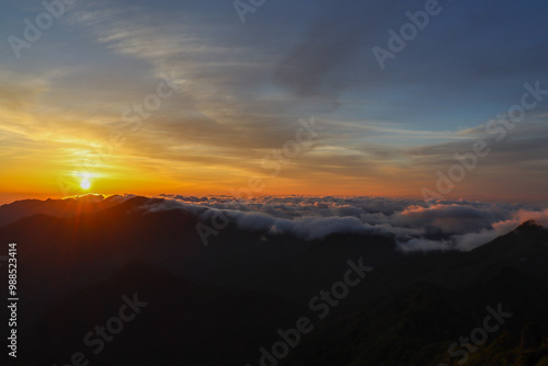 Obraz premium 石鎚山頂上からの朝焼けと御来光