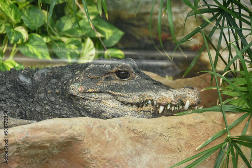 Obraz premium 岩の上で休むニシアフリカコガタワニ
