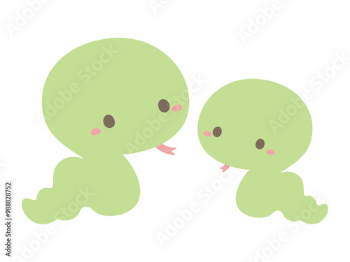 © GRACE, Obraz premium 年賀状素材の挿絵、巳年のヘビの夫婦のベクターイラスト素材