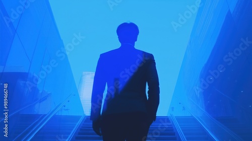 © chic designs, Obraz premium 春の野望:モチベーションと成功のために東京で階段を上るビジネスマン