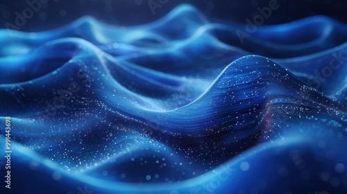 © 炳伟 梁, Obraz premium 曲线粒子波纹弯曲线条点线科技背景