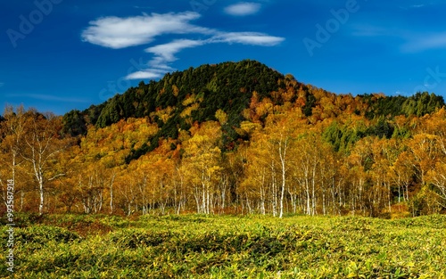 Naklejka premium 志賀高原、田ノ原湿原の遊歩道からの美しい紅葉の風景