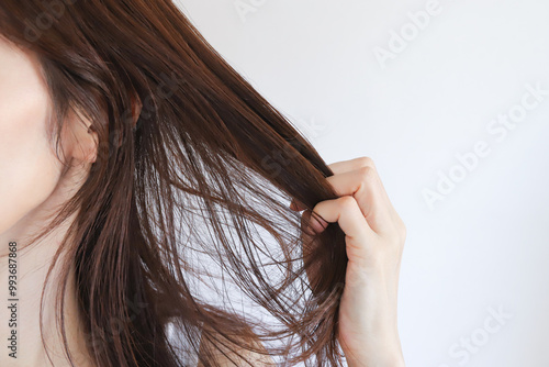 Obraz premium 髪の毛を触る女性 ヘアケアイメージ