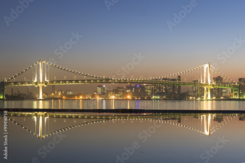 © oka, Fototapeta premium 晴海から望む レインボーブリッジと品川埠頭 芝浦方面