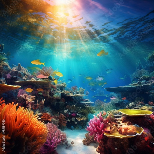 © 俊明 藤川, Naklejka premium さんごと水中の小魚
