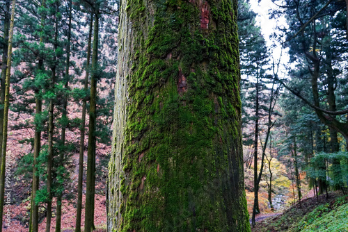 Obraz premium 苔むした杉並木が続く榛名神社千本杉(群馬県高崎市)