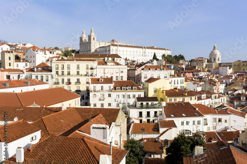 Fototapeta premium 白い壁と赤い屋根のリスボン市内