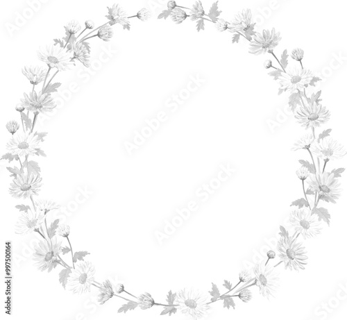 © miko, Obraz premium モノクロの菊の花の円フレーム