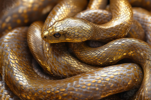 © dadakko, Obraz premium ゴールドの輝きに包まれたヘビ | 豪華な動物の美