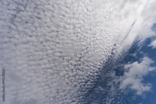 Fototapeta premium Photo background texture of blue sky with small clouds.