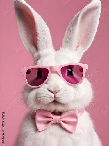 © Elite Elegance, Obraz premium photo beautiful Rabbit wearing Cool sunglasses on Isolated Background