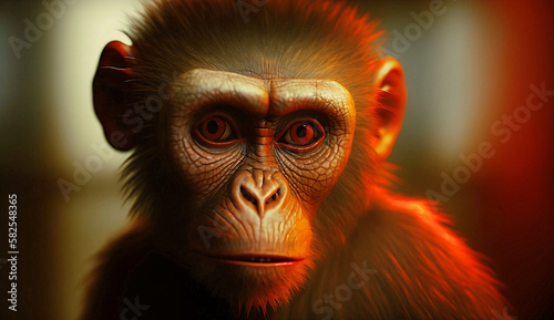 Fototapeta premium Photo Brown fur monkey with red eyes and blurred background