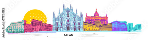 © Solarisys, Obraz premium Photo collage from Milan, Italy. Collage includes major landmarks like the castle, cathedral. design