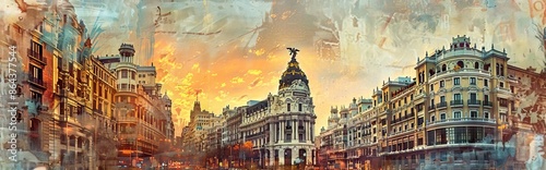 © Lytvyniuk, Naklejka premium photo collage with an ancient city. Paper texture. AI generated illustration