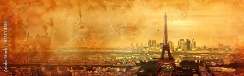 © Elvin, Obraz premium photo collage with an ancient city. Paper texture. AI generated illustration