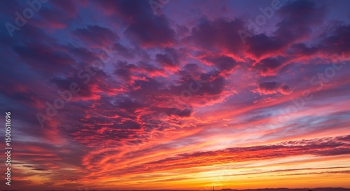 © KarenJ, Fototapeta premium Photo Dramatic Sunset With Red Orange And Blue Clouds In Evening Sky