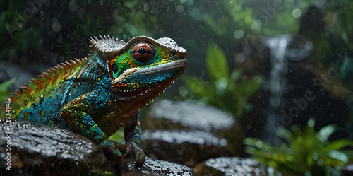 Obraz premium photo Exotic Reptile of chameleon with various colors of nature