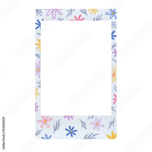 © gurlinthetri, Obraz premium Photo frame border white Polaroid Mini with colorful floral pattern illustration