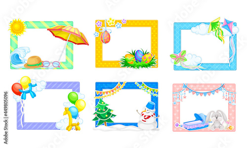 Fototapeta premium Photo Frame or Picture Frame Decorated with Elements Vector Set