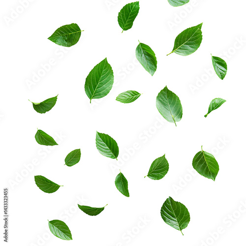 © john, Fototapeta premium photo green leaves falling separately on a white background