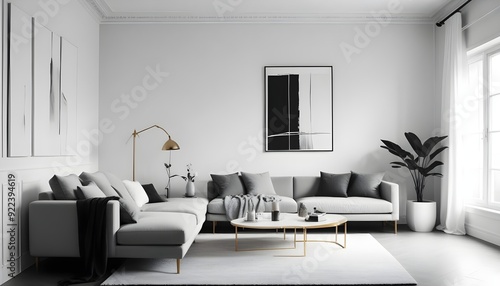 © Macro, Obraz premium Photo interior modern design room 3d illustration