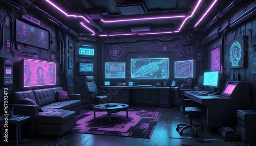 © Eyeam, Obraz premium Photo interior modern design room 3d illustration;