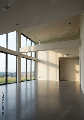 Fototapeta premium Photo Large Empty Modern Room with Windows Natural Daylight and Reflection