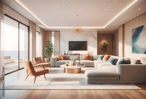 Fototapeta premium Photo modern style conceptual interior room 3d illustration
