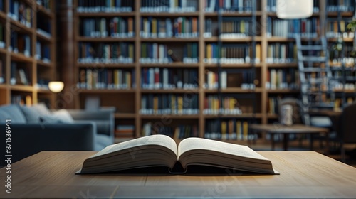 Fototapeta premium Photo of a book leaves the page open, in a library is background, Generative AI